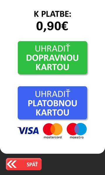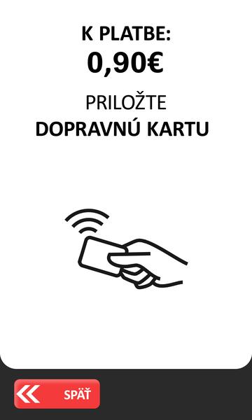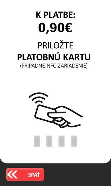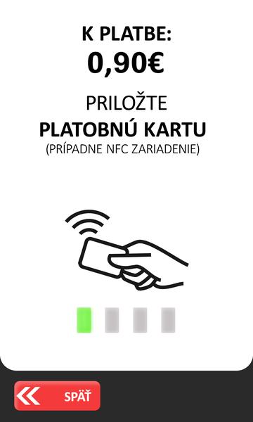 Zobrazí sa cena cestovného lístka s výzvou na zaplatenie resp. priloženie platobnej karty alebo iného zariadenia s NFC k označovaču.